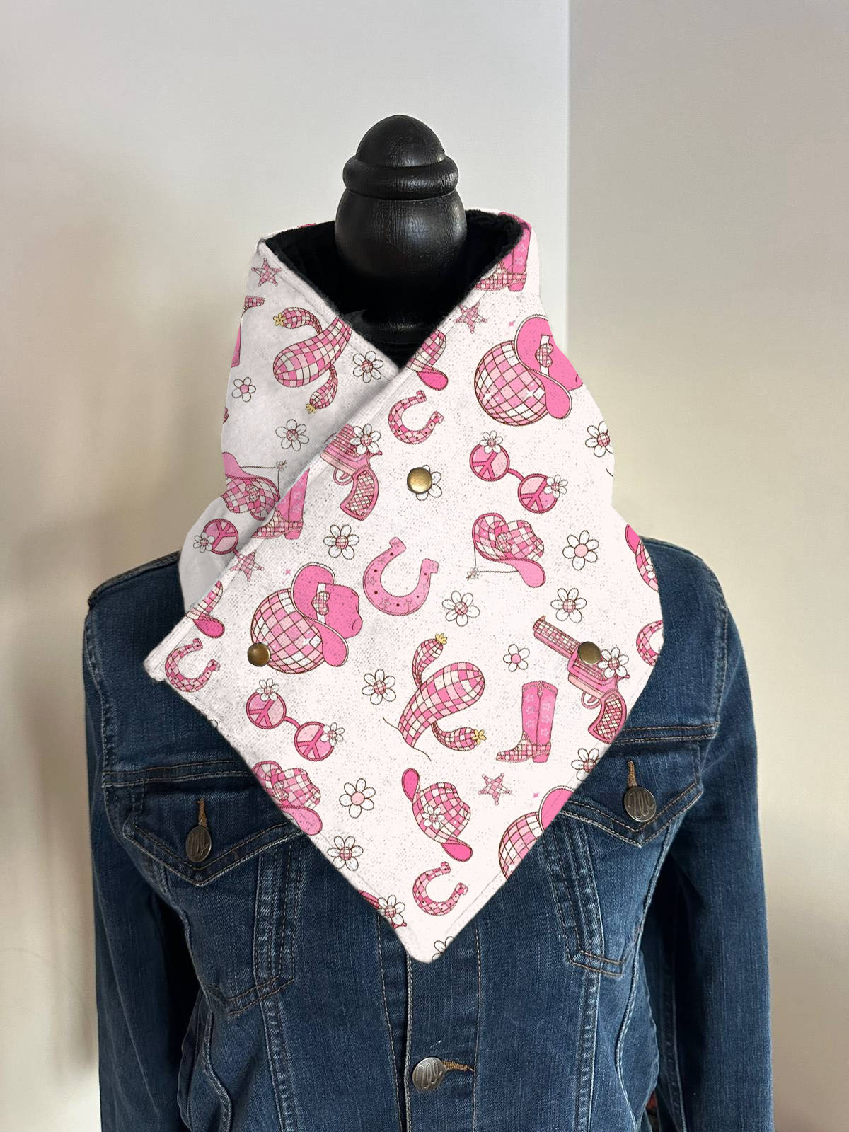 Women's Western Horseshoe Print Warm Neck Hood